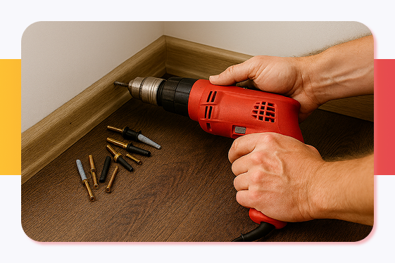 Мастера выполняют точные запилы под 45/90°, подгонку к неровным стенам, стыковку внутренних/внешних углов, подбирают крепёж (клипсы, клей, саморезы), аккуратно ведут кабель-канал и герметизируют швы. Результат — чистый, быстрый и долговечный, без щелей и скрипов, с гарантией. Поручив монтаж плинтуса специалистам, вы экономите время и избегаете порчи стен и напольного покрытия.